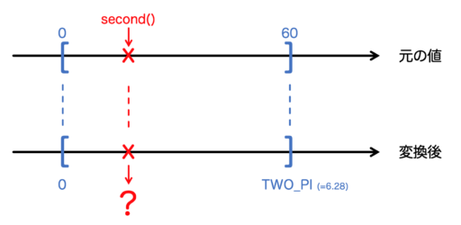 例えばsecond()の値が30だった場合、mapされた後の値はπとなります。